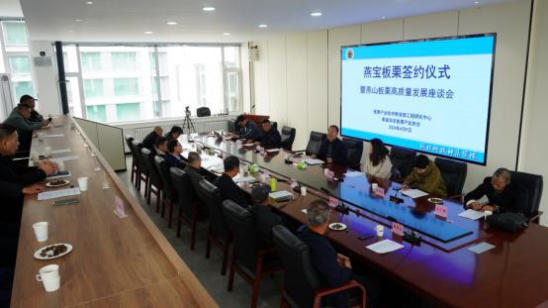 通過座談,與會人員深入了解到該中心研發(fā)的新品種—“燕寶”板栗的特點和優(yōu)勢:該板栗具有早果性強、豐產(chǎn)性強、抗旱性強、成熟期集中等突出優(yōu)點,特別是在口感上更加細膩、更加軟糯香甜,是燕山板栗的優(yōu)秀代表,極具推廣價值。